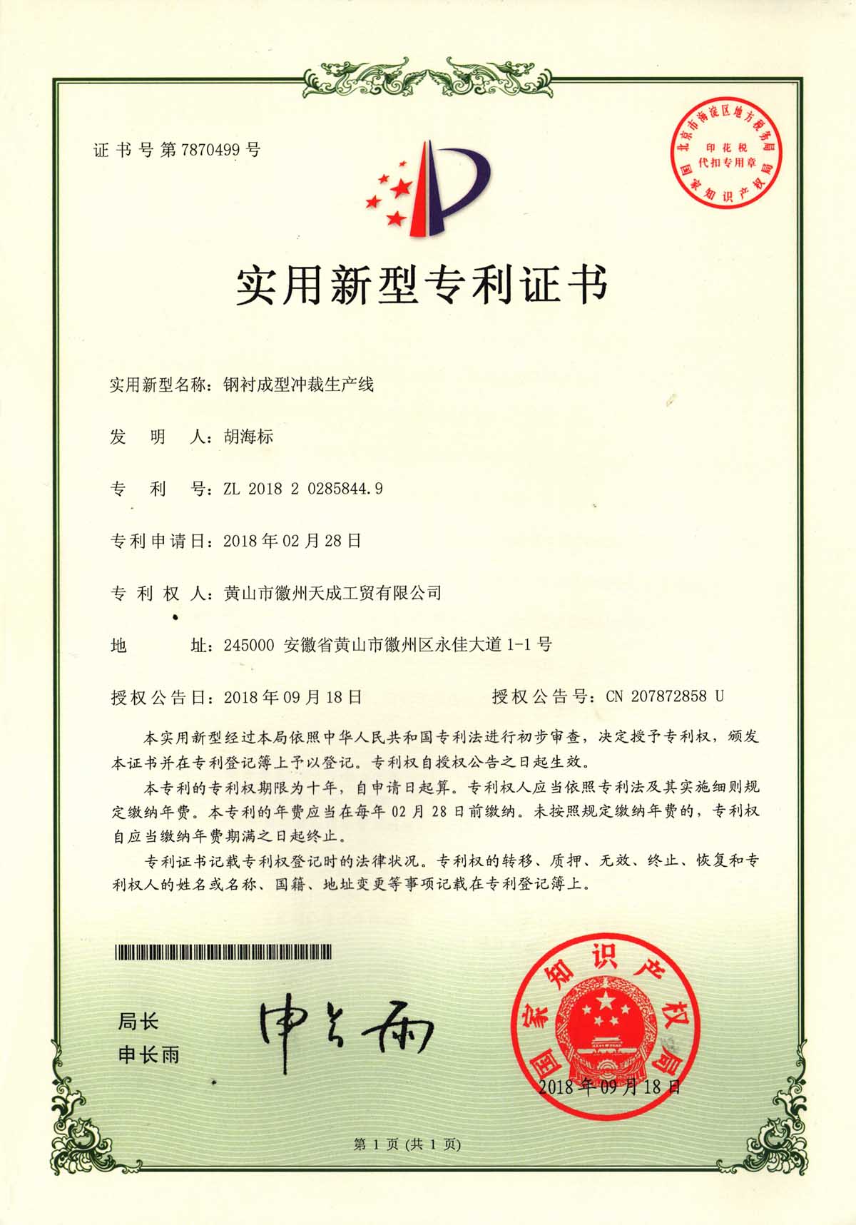 二十年來,天成人一直專注于塑鋼門窗生產制造,從產品性能到生產工藝,從系統(tǒng)管理到設備研發(fā)。其中”鋼襯成型沖裁生產線“就是天成自主研發(fā)的生產設備,并獲取了實用新型專利。